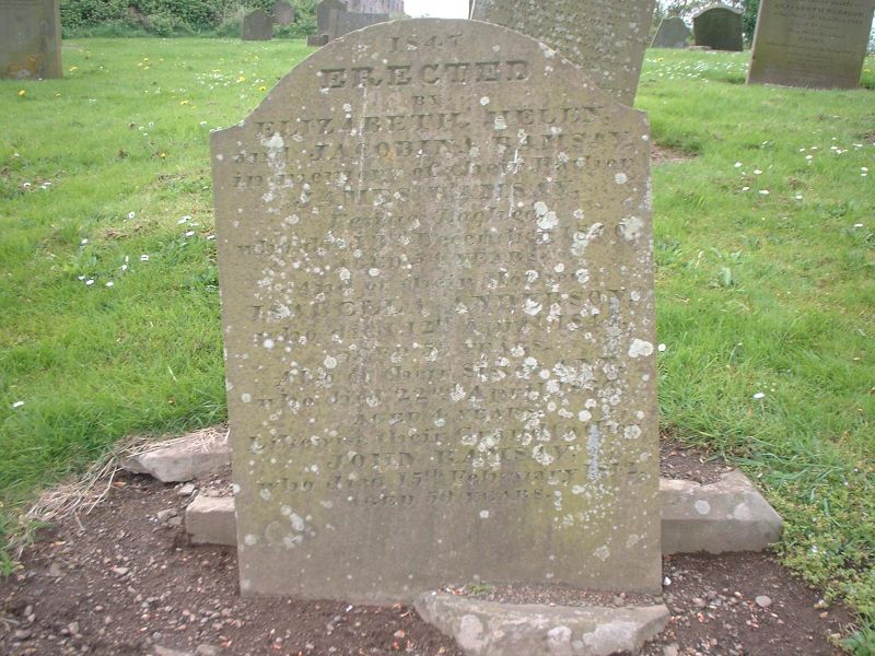 1847 Erected By ELIZABETH, HELEN and JACOBINA RAMSAY in memory of their father JAMES RAMSAY Feuar Lochee who died 3rd December 1840 aged 54 years and of their mother ISABELLA ANDERSON who died 12th April 1847 aged 55 years also of their sister ANN who died 22nd April 1835 aged 4 years likewise their Grandfather JOHN RAMSAY who died 15th February 1812 aged 59 years