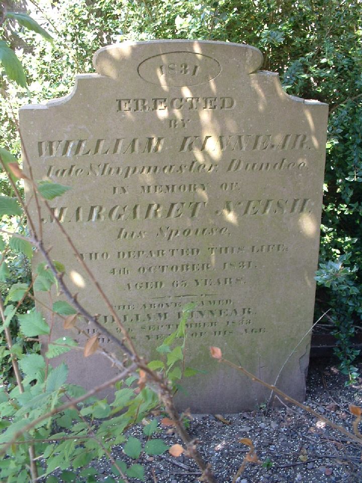 1831 Erected By William Kinnear Late Shipmaster Dundee In memory of Margaret Neish his spouse who departed this life 4th October 1831 aged 65 years ____