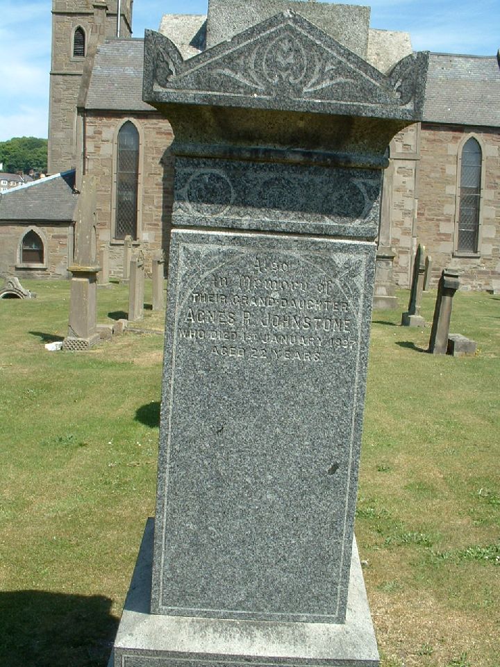 Also in memory of thier daughter Agnes R Johnstone who died 1st January 1887 Aged 22 years ____________
