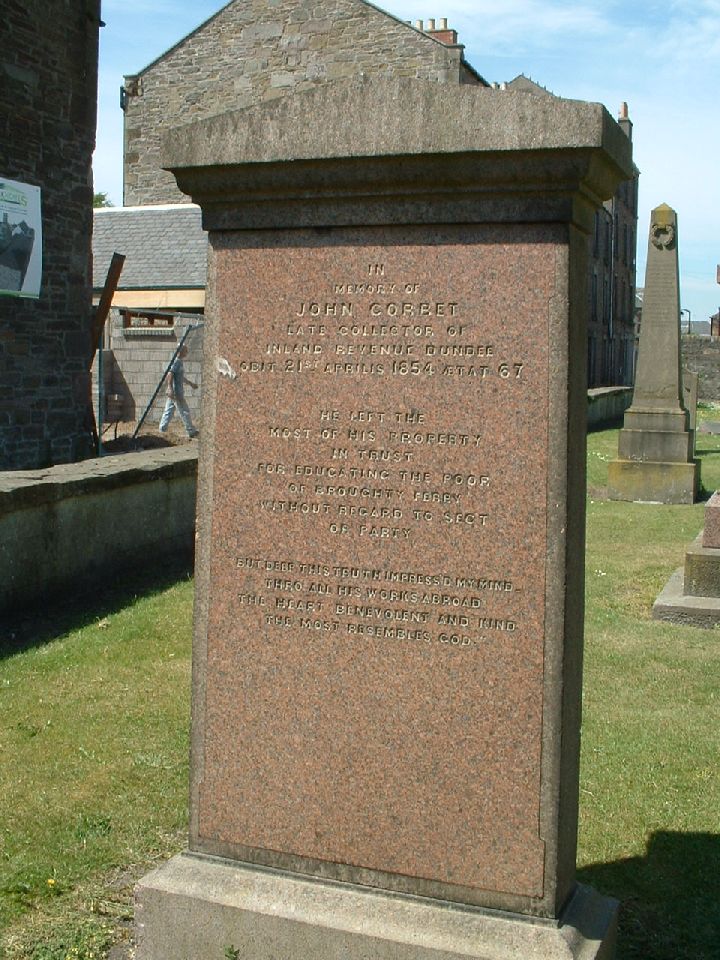 In memory of John corbet Late collectors of Inland revenue Dundee obit 21st Aprilis 1854 AEtat 67